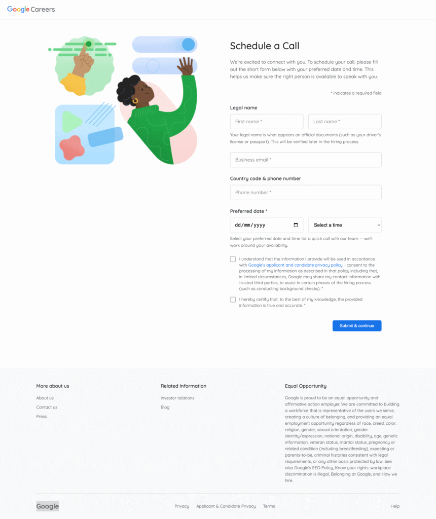 El enlace me lleva a una página, también muy bien maquetada, muy creíble, con el logo de Google Careers y los enlaces que había llevaban a páginas de Google… Lo que viene siendo un disfraz perfecto pero con algo que chirría.