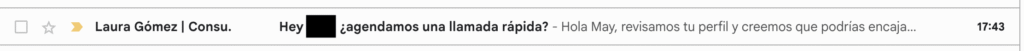 Me puede la curiosidad, así que lo abro con cierto escepticismo, pensando: “otro recruiter que no sabe ni quién soy ni a qué me dedico”. Y sorpresa, logo de Google, un texto bien redactado y bastante convincente (una pena que se me olvidó hacer el pantallazo). Nada que ver con los típicos correos chapuceros que nos suele llegar directamente a spam.